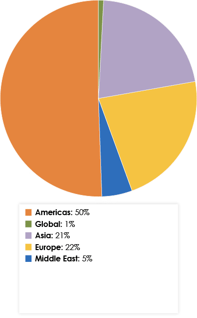 Americas (within the pie chart): Includes U.S., Canada, and Latin America.